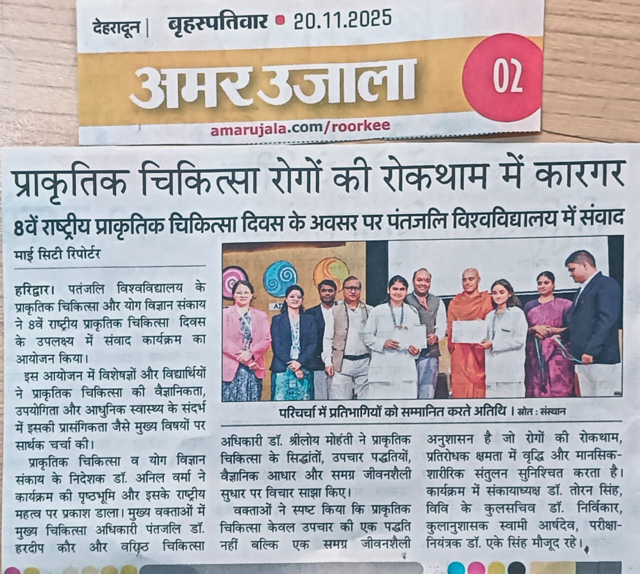 A three days International conference on 'Plants to Patients' was organized by Patanjali Research Foundation. Chancellor of the UoP, Yoga Rishi Swami Ramdev ji on the occasion said that Patnjali has made evidence based Ayurvedic medicines. Vice Chancellor of the UoP, Ayurved Shiromani Acharya Balkrishna Ji said that the whole world is looking at Patanjali for better health.