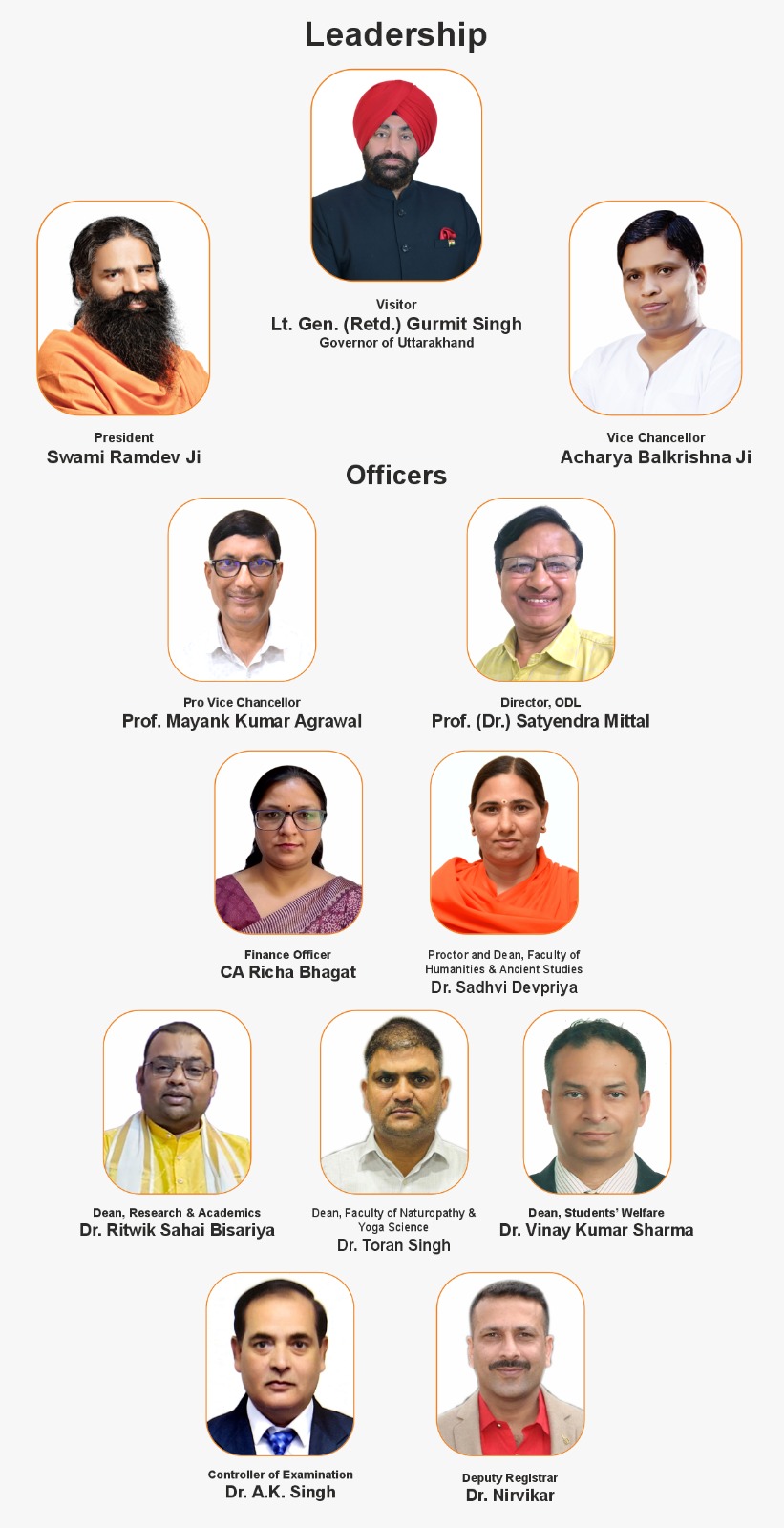 University of Patanjali is a manifestation of the divine vision of Yogrishi Swami Ramdev Ji and Ayurved Shiromani Acharya Balkrishna Ji who have established a centre of holistic learning blending ancient wisdom with modern knowledge.