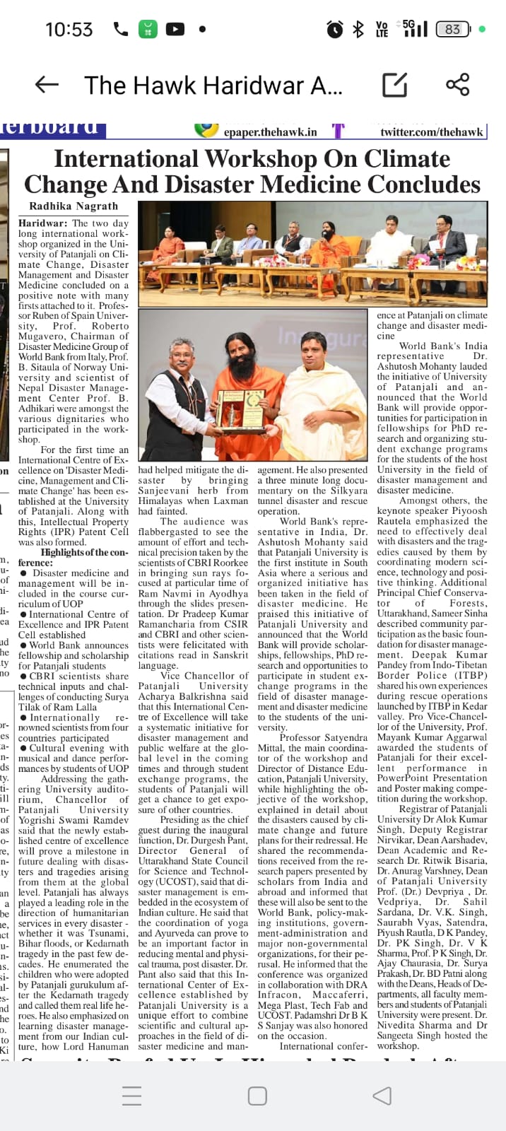 University of Patanjali is a manifestation of the divine vision of Yogrishi Swami Ramdev Ji and Ayurved Shiromani Acharya Balkrishna Ji who have established a centre of holistic learning blending ancient wisdom with modern knowledge.