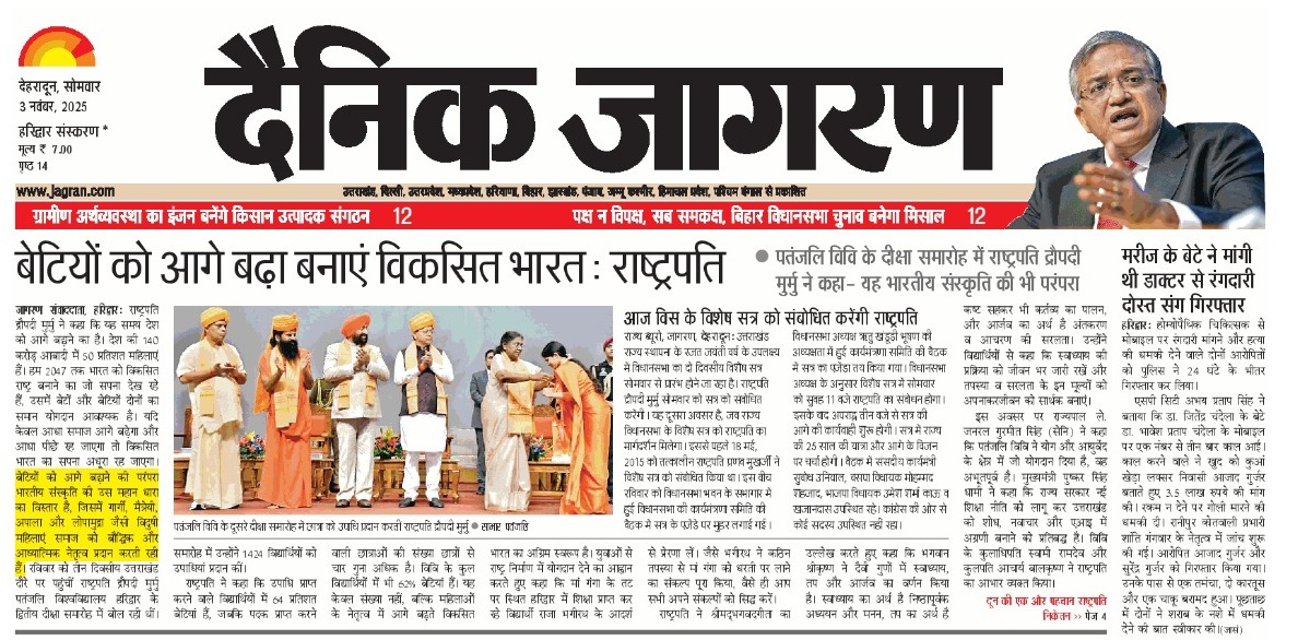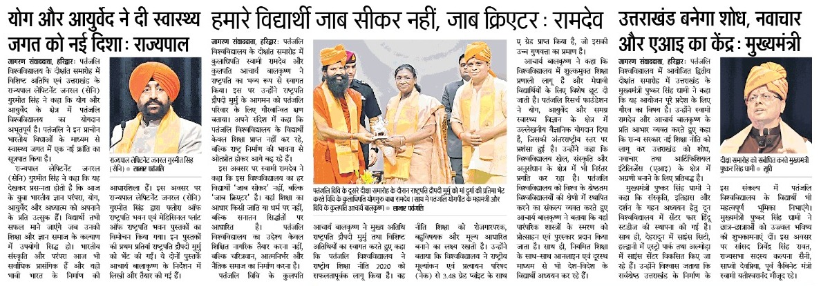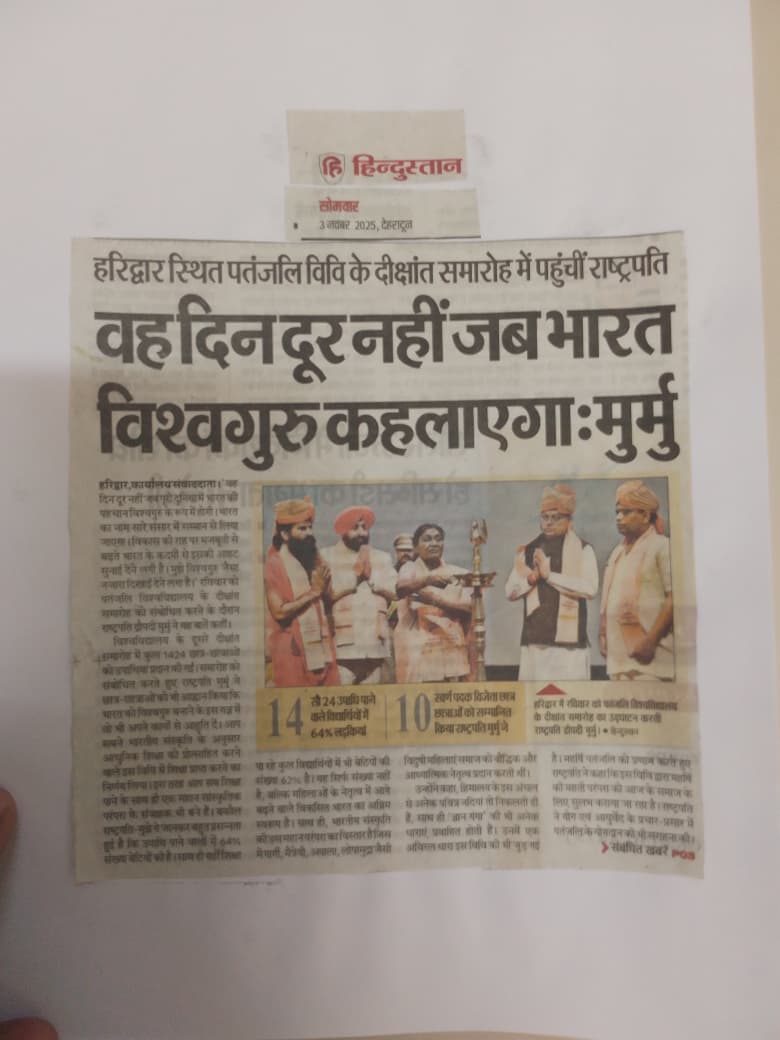 UoP celebrated Maharishi Dayanand's 200th birth anniversary. Chancellor of the UoP, Yoga Rishi Swami Ramdev ji on the occasion said that Patanjali is committed to build the India that Maharishi Dayanand ji had envisioned and dreamt of. The guests talked about Patanjali's dedication, research, and service to fulfil Maharishi Dayanand's dream.