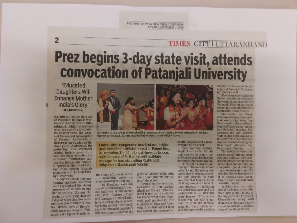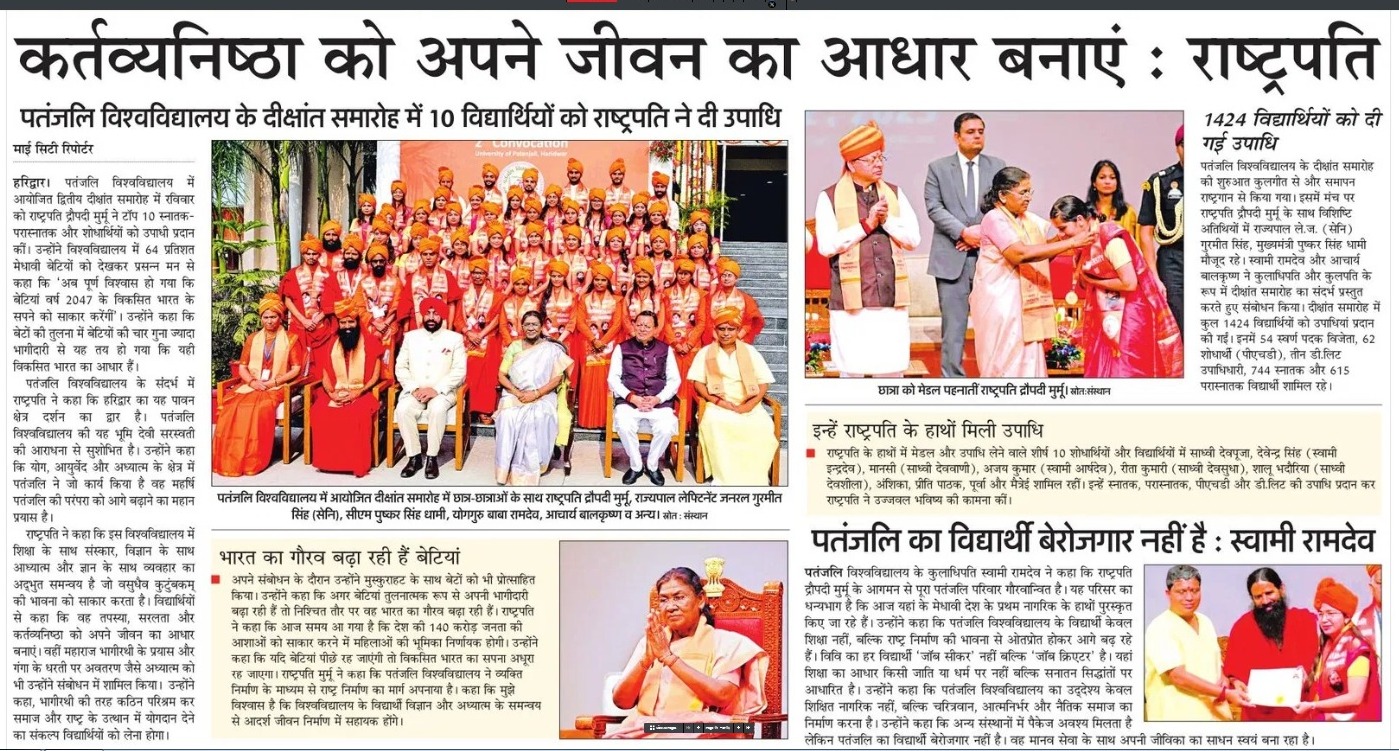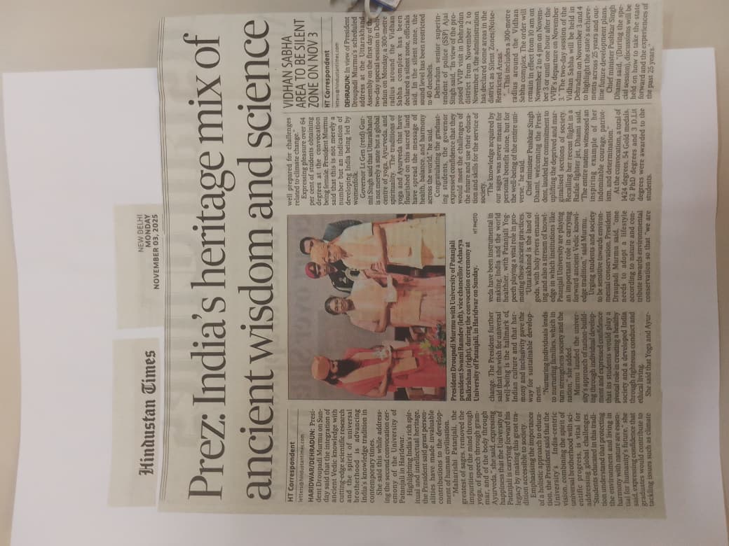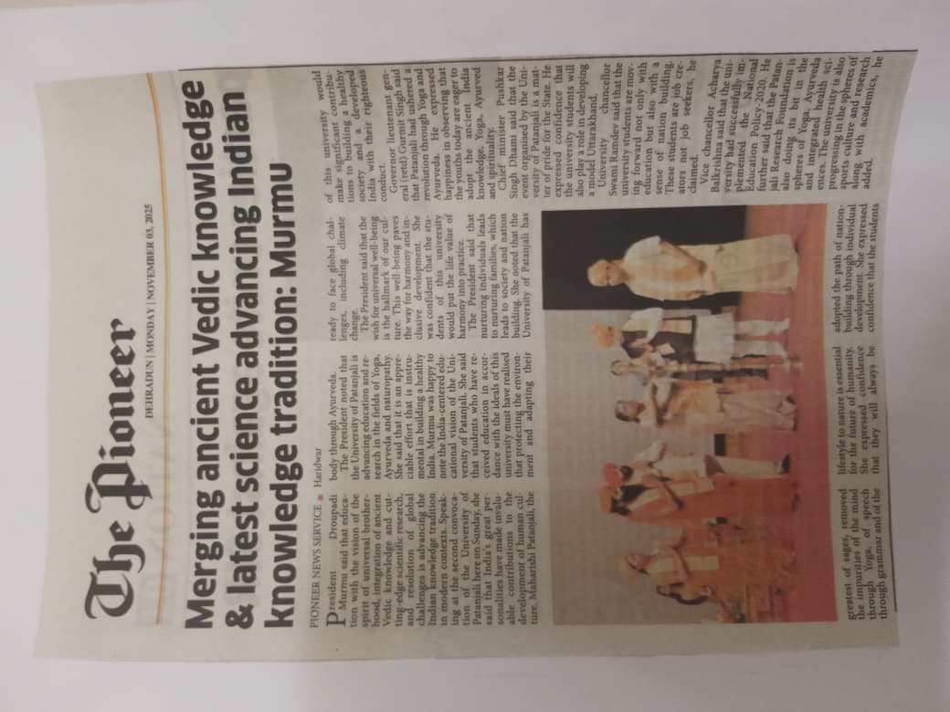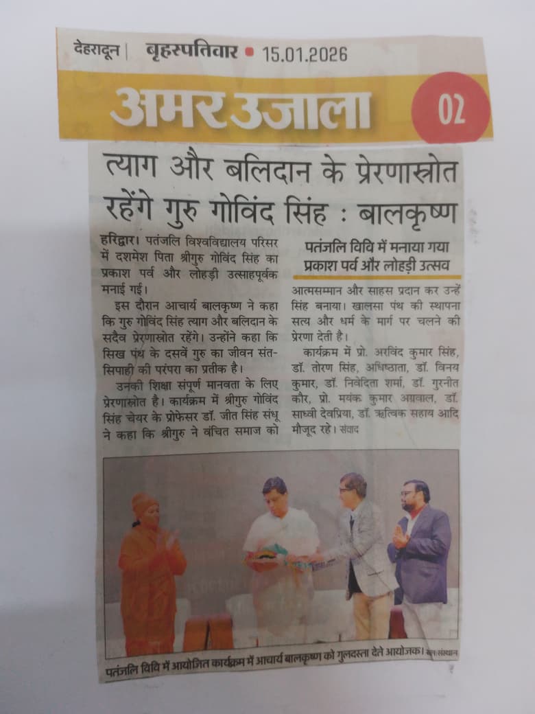 University of Patanjali is a manifestation of the divine vision of Yogrishi Swami Ramdev Ji and Ayurved Shiromani Acharya Balkrishna Ji who have established a centre of holistic learning blending ancient wisdom with modern knowledge.