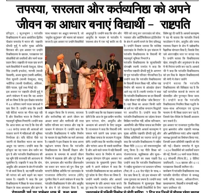 The Annual Abhyuday festival was held jointly by the UoP and Ayurveda College where Vice Chancellor of the UoP, Ayurved Shiromani Acharya Balkrishna Ji advised students to promote Indian culture.