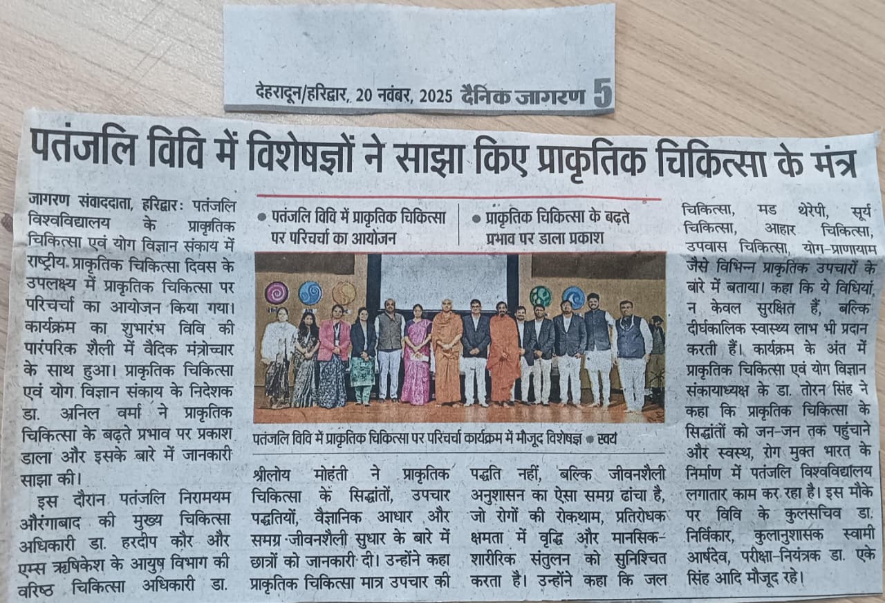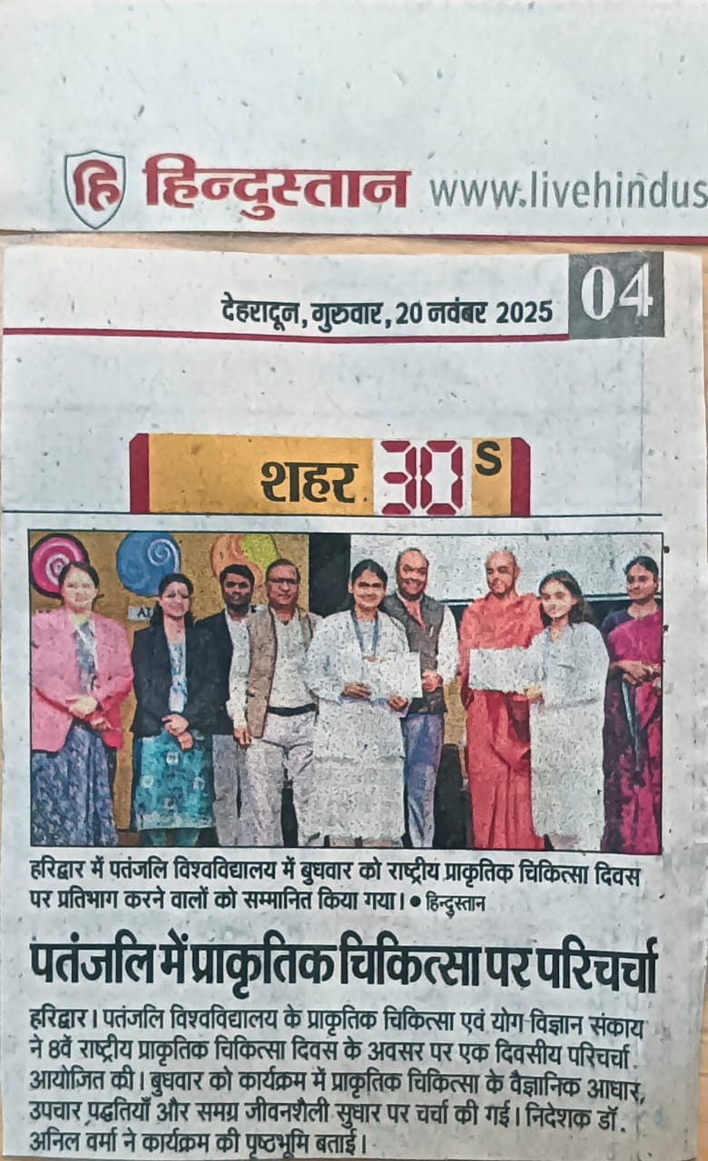 UoP conducted a Two -day conference on Indian Meditation system under the UGC's Yoga Center in Bengaluru. Vice Chancellor of the UoP, Ayurved Shiromani Acharya Balkrishna Ji said that meditation holds a very important role under the Ashtang Yoga. It increases the mental concentration. Meditation has been used under the Indian medical system for enhancing spiritual development and curing various diseases.